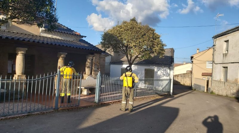 Los bomberos desinfectan las principales zonas urbanas de La Alamedilla